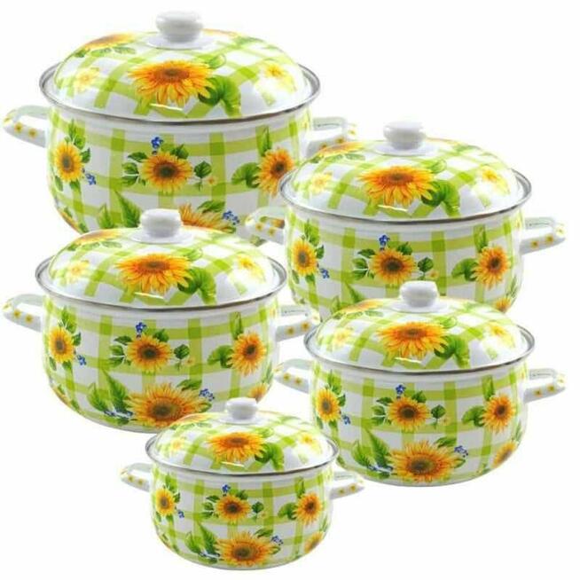 Nowe Komplet garnków wykonanych z wysokiej jakości stali węglowej, pokrytej powłoką emaliowaną. Akutermiczne, ...